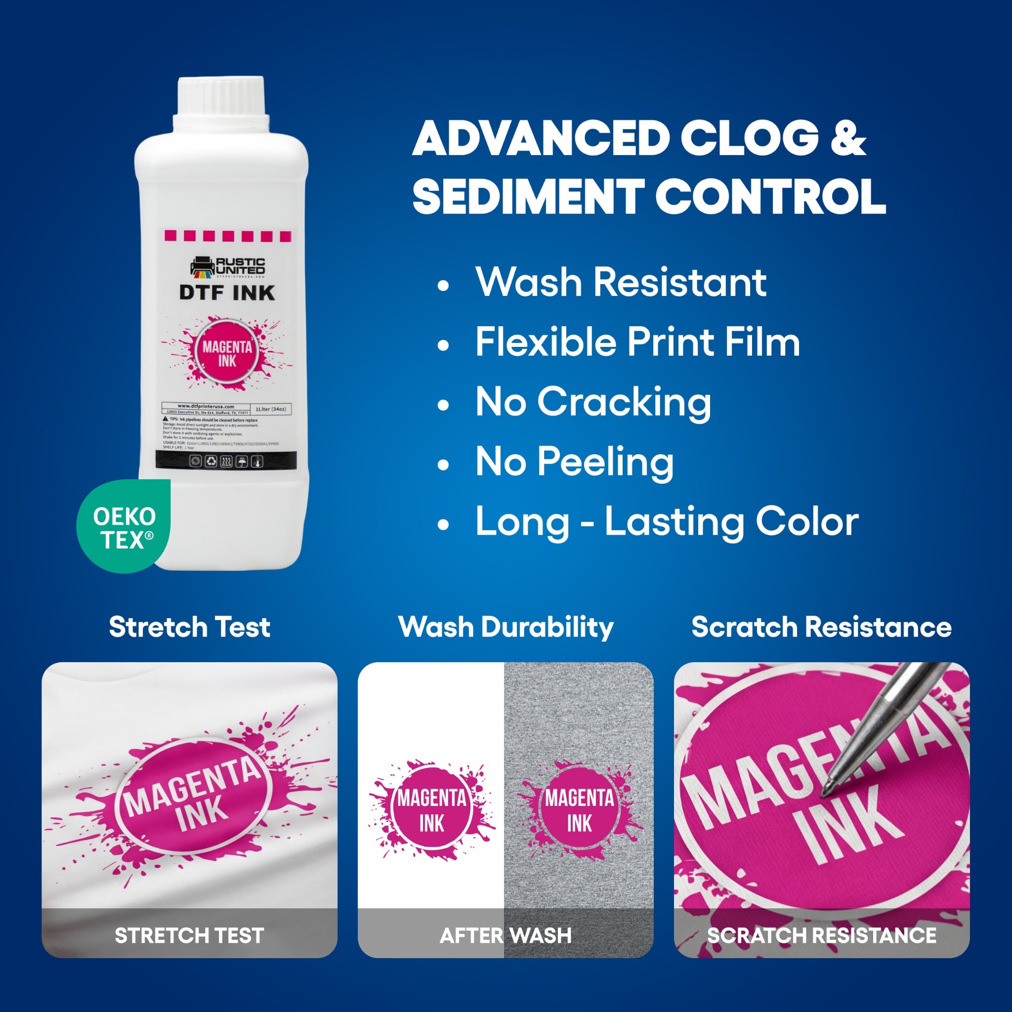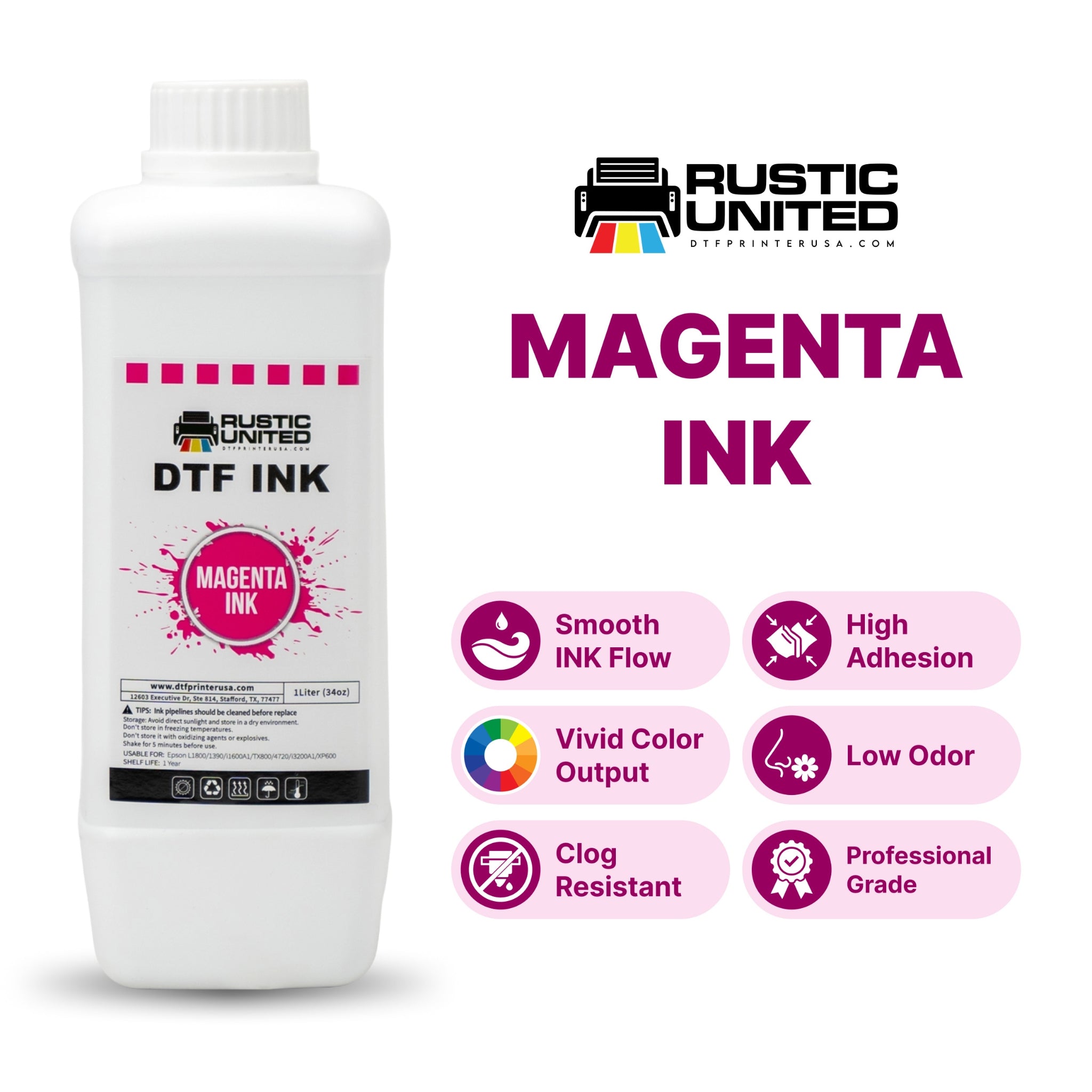 Create vibrant DTF prints: The opaque magenta color of the ink provides a solid base for your designs, ensuring sharpness and allure that captivates.