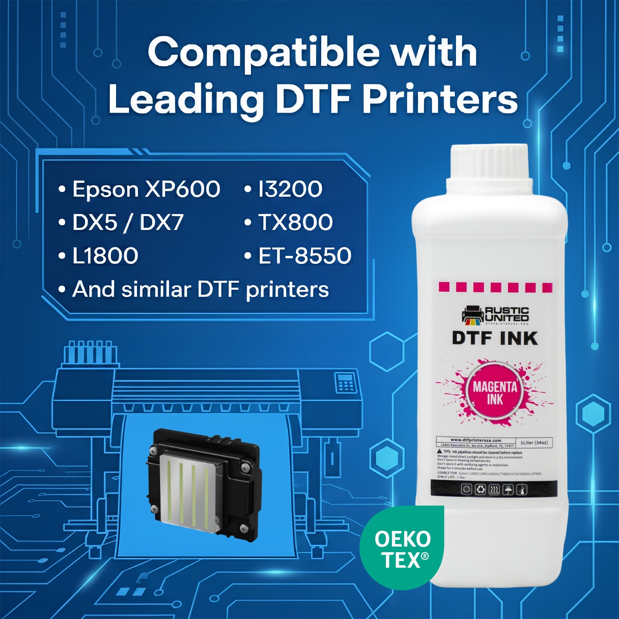 DTF Printer USA Magenta Ink is a high-quality, water-based, non-toxic ink that is perfect for use with DTF printers. The ink is opaque and long-lasting, making it ideal for creating high-quality DTF prints on a variety of materials.