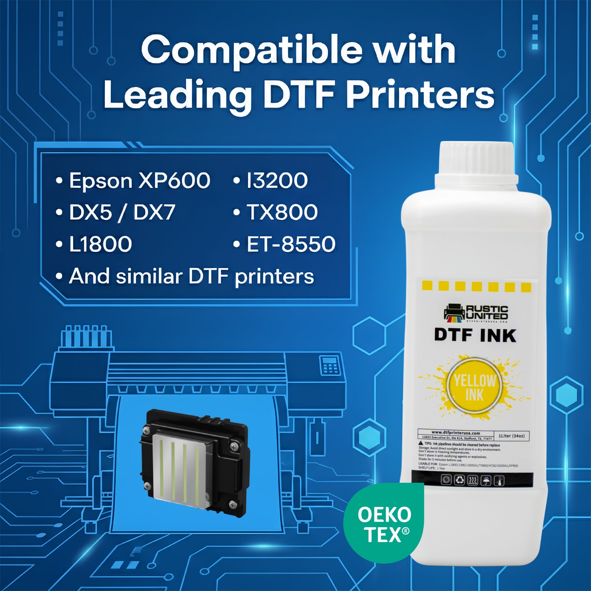 DTF Printer USA Yellow Ink is a high-quality, water-based, non-toxic ink that is perfect for use with DTF printers. The ink is opaque and long-lasting, making it ideal for creating high-quality DTF prints on a variety of materials.